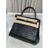 25CM 사이즈, 실버 버클 디자인. 수입 나일 악어가죽 고광택 소재 사용, 현품 출고 가능한 신상품. 최고급 수제봉제 공예로 제작된 프리미엄 핸드백.