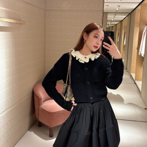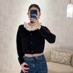 블랙 크롭 가디건 화이트 프릴칼라