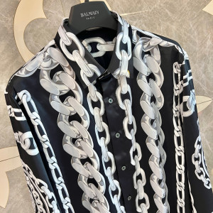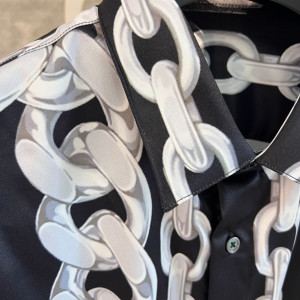 체인 프린트가 특징인 블랙/그레이 컬러 셔츠입니다. M부터 XXXL까지 다양한 사이즈로 제공됩니다.