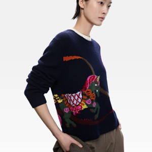신상품 오르도스 양모 제카드 라운드넥 긴팔 니트 스웨터입니다. 텍스처가 입체적이고 풍성하며 세밀한 디테일로 고급스러운 느낌을 연출합니다. 심플하고 대기 있으며 우아하고 세련된 패션 아이템입니다. 색상: 대홍색, 블루 / 사이즈: S, M, L