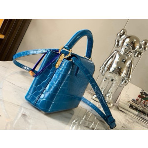 최고급 대행 품질의 프러시안 블루 광택 크로커다일 패턴 골드 버클 가방입니다. 상세 특징: - 크기: 21x14x8cm (가로 x 세로 x 폭)
