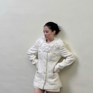 화이트 트위드 더블 코트