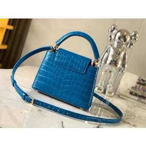 최고급 대행 품질의 프러시안 블루 광택 크로커다일 패턴 골드 버클 가방입니다. 상세 특징: - 크기: 21x14x8cm (가로 x 세로 x 폭)